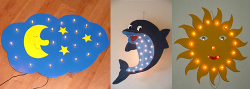 Hier sehen Sie Beispiele unserer selbstgebastelte Sachen, die zum Verkauf stehen. Z.B.: selbstgebasteltes Crea Pop Lampen, Windlichter, Holzarbeiten